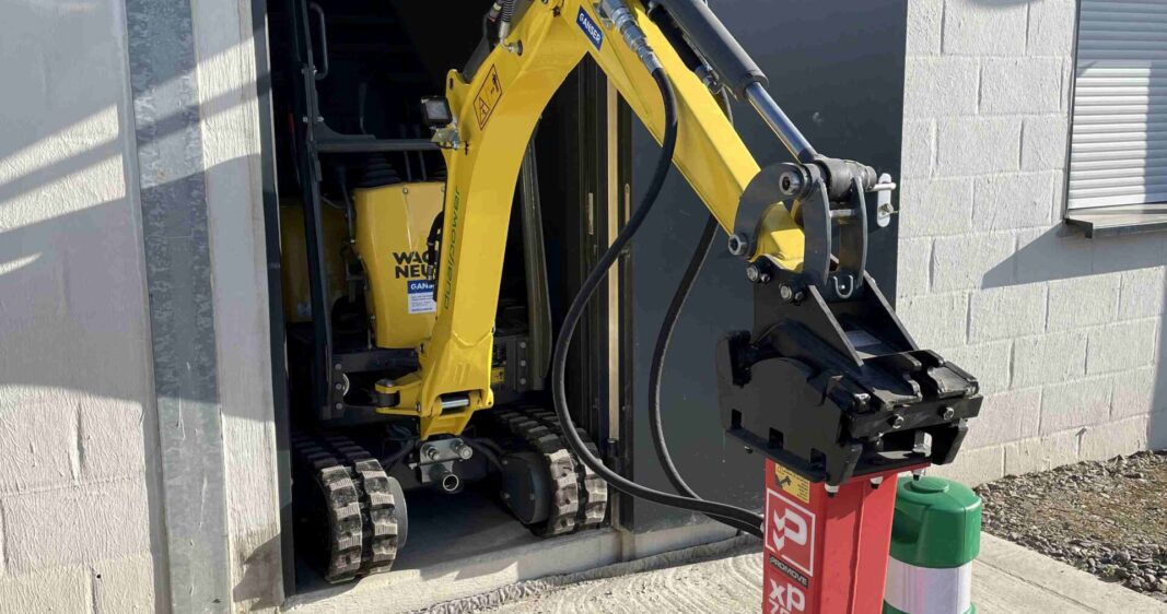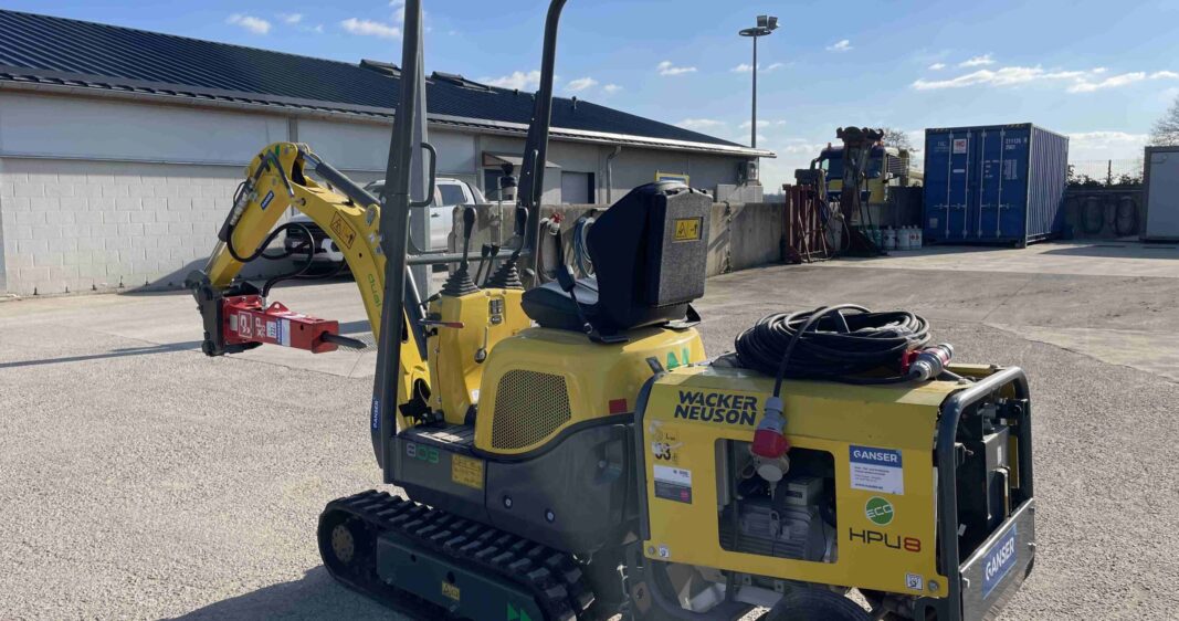 - la mini-pelle peut travailler à l’aide du groupe hydraulique SANS EMISSIONS dans des chantiers intérieurs et extérieurs