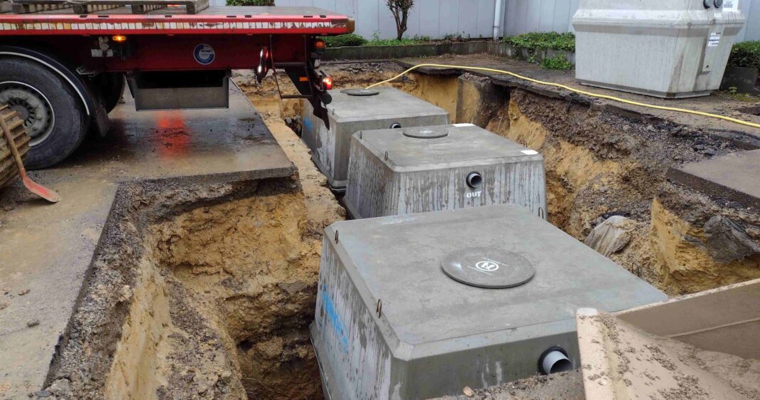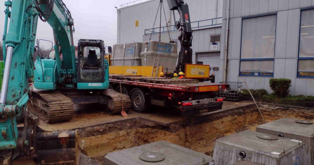Installation d’une station d’épuration de 58 EH – Gewicht der Elemente : 7.500kg, 6.230kg & 5.820kg