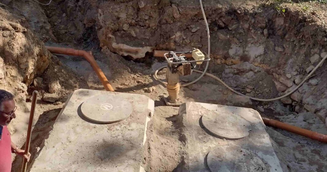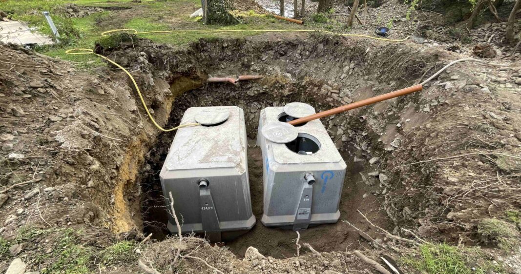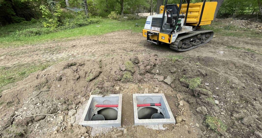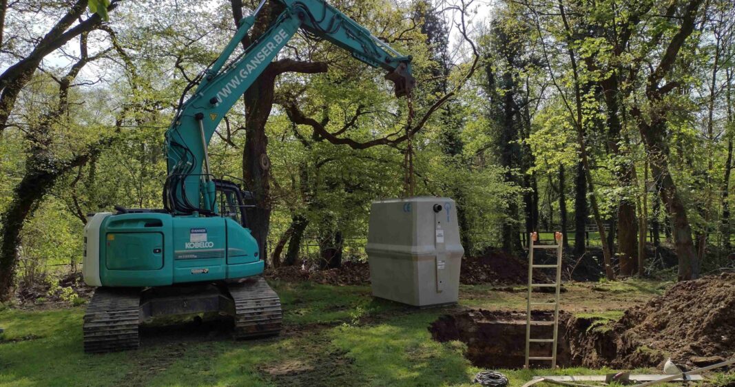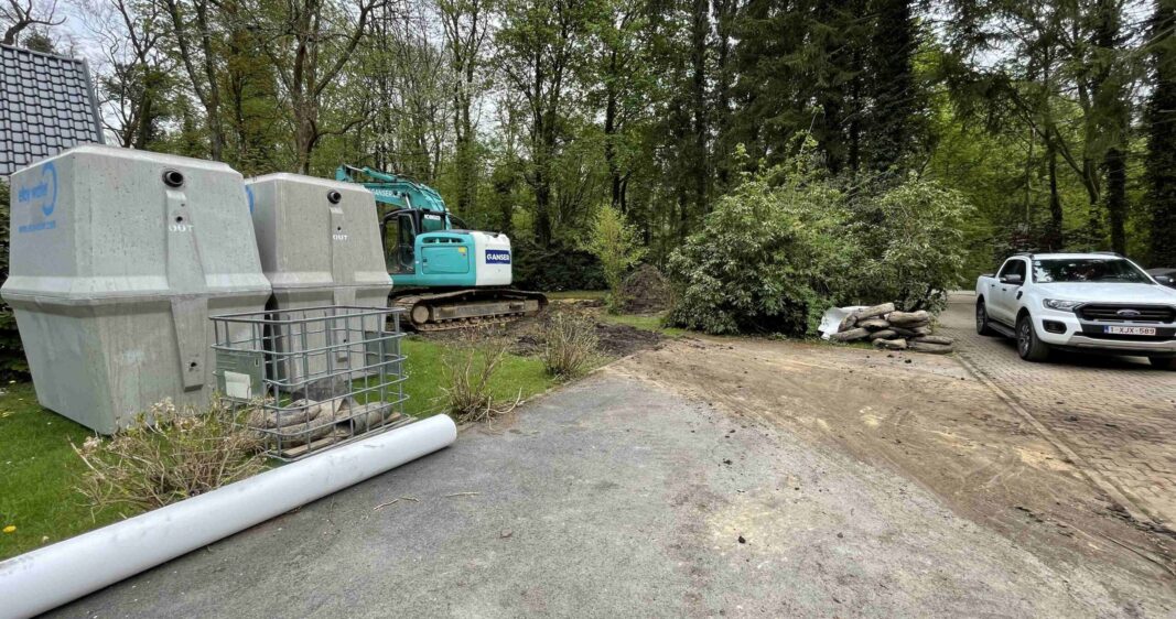 Remplacement d’un système d’épuration inopérationnel pas une microstation 17 EH, prétraitement des eaux venant de la cuisine par un séparateur à graisse de 7.500 litres. Lestage de l’ensemble des cuves installés vu que la nappe phréatique est très haute à cet endroit