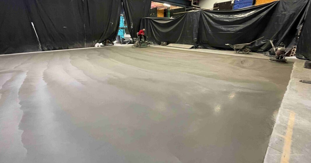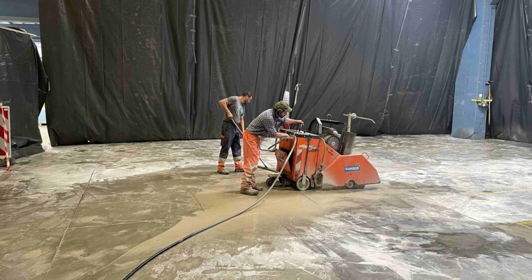 Le sol existant présentait d’anciens fondations de machines, ce qui le rendait irrégulier et inadapté à la nouvelle utilisation.
