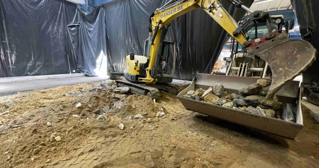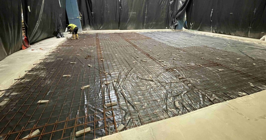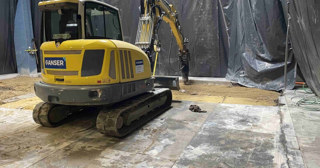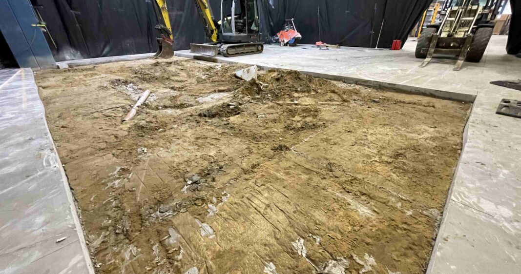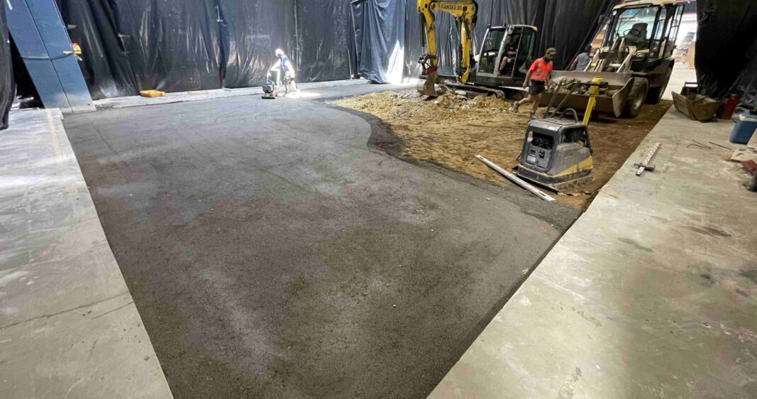 Les fondations ont été partiellement démolies, puis un nouveau sol en béton a été coulé et poli, assurant une surface plane et fonctionnelle.