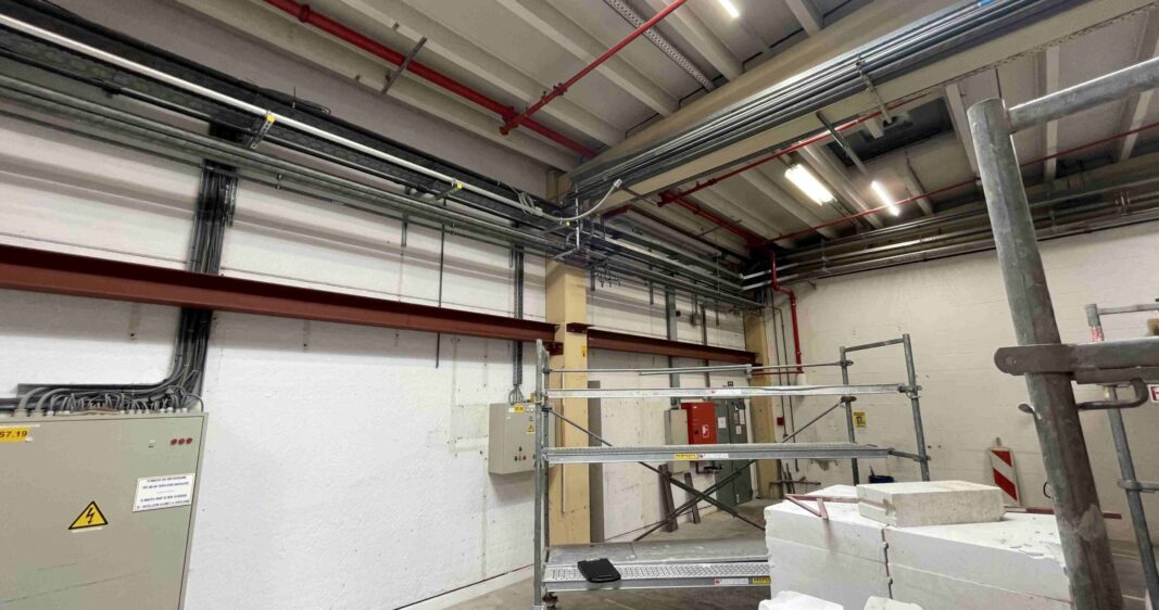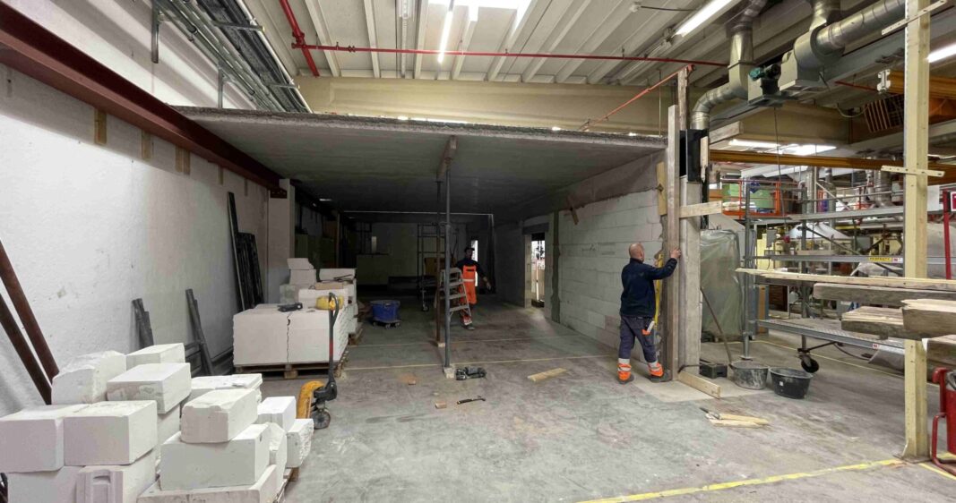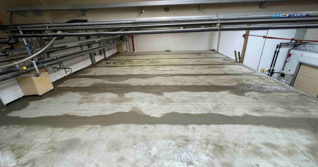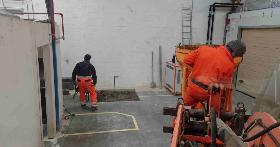 Cela a nécessité la mise en place d’un plafond en béton, dont la pose, en raison de la faible hauteur sous plafond, a exigé l’utilisation d’outils spécialisés.