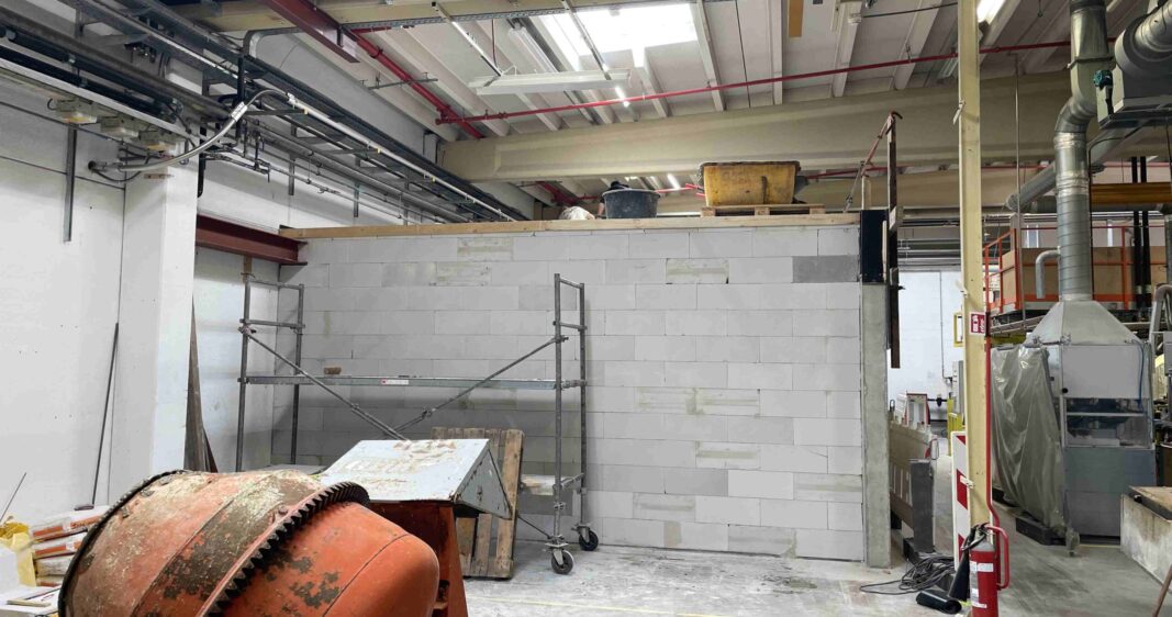 Le projet présentait un accès difficile, et comme l’intérieur du laboratoire se trouvait dans une zone coupe-feu distincte, l’enveloppe du bâtiment a dû être réalisée en matériaux résistants au feu.